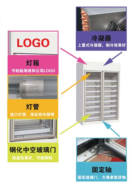 ★冷柜頂部可選配燈箱,粘貼促銷海報(bào)和公司LOGO。