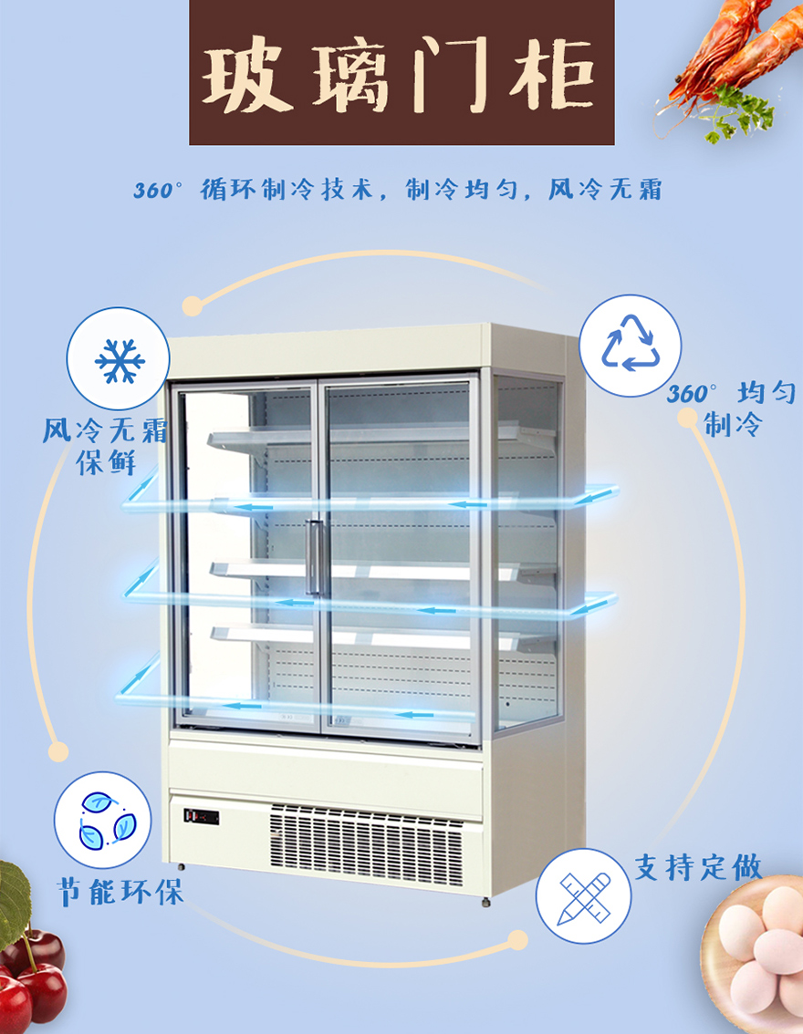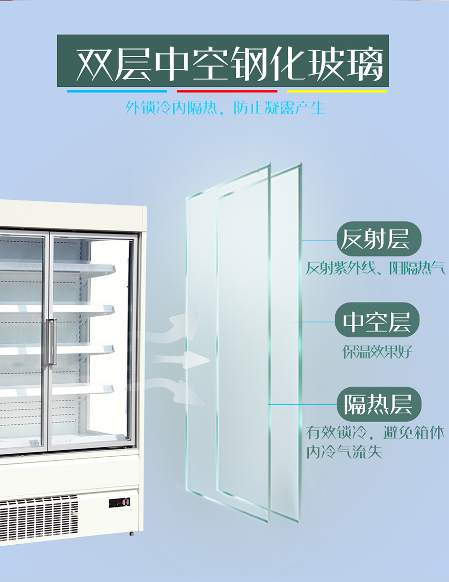 ★中空防凝露玻璃門(mén)設(shè)計(jì),節(jié)能降耗,保證展示食品安全。
