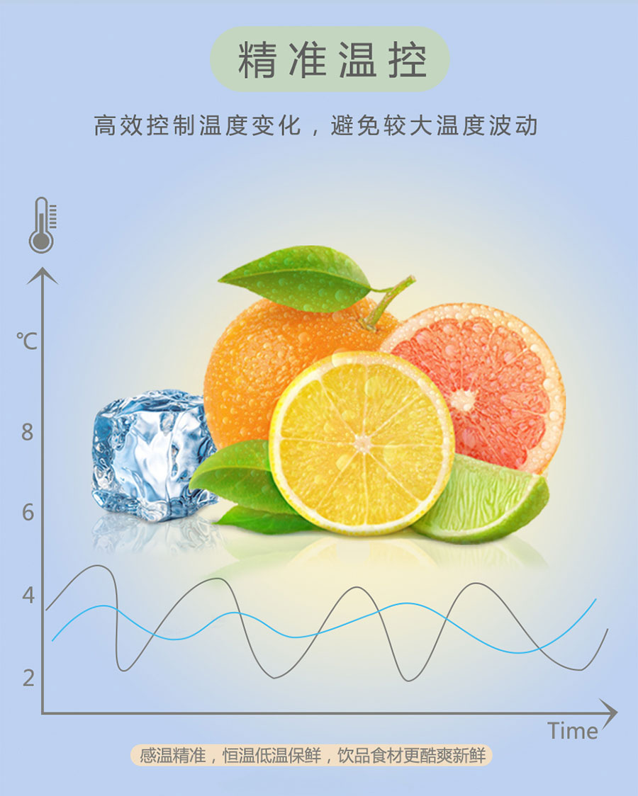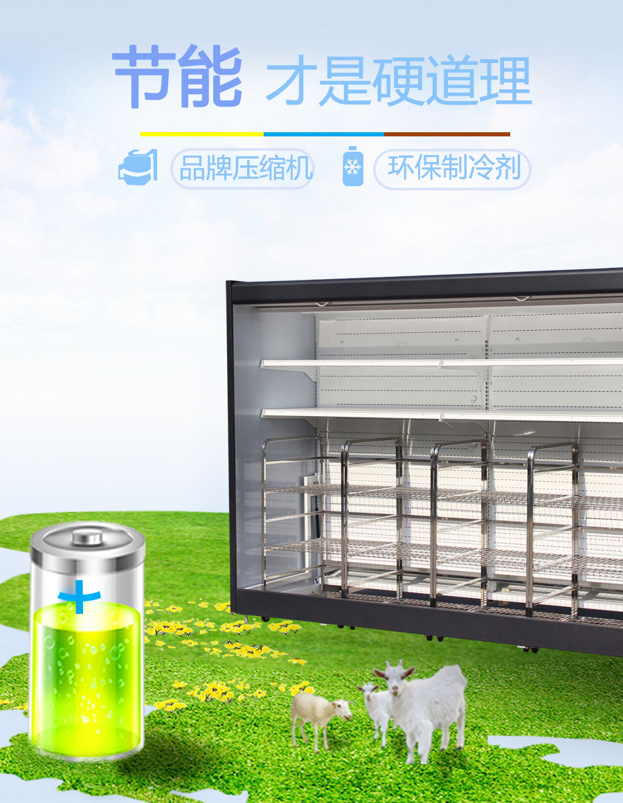 ★采用獨(dú)特的風(fēng)幕設(shè)計(jì)和背板出風(fēng)技術(shù),溫度均勻,有效降低陳列柜能耗。